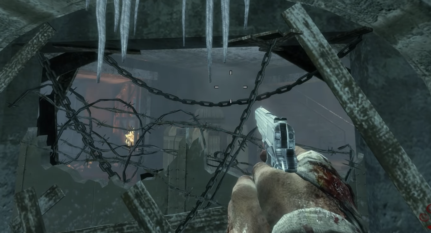 shoot zombie in the bottom floor of the lighthouse with V-R11 near a green light